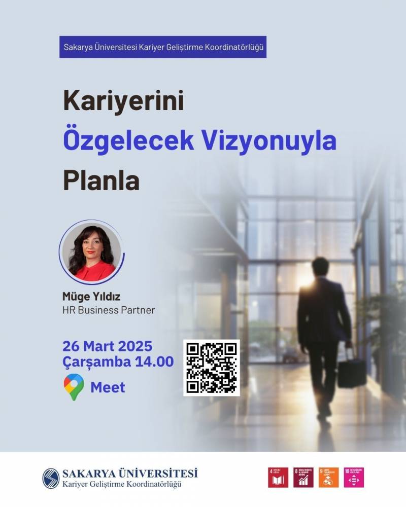 26 Mart 2025 Çarşamba günü saat 14.00'te online olarak gerçekleştirilecek olan "Kariyerini Özgelecek Vizyonuyla Planla"' konulu etkinliğimizi sizlerle paylaşmaktan memnuniyet duyarız.