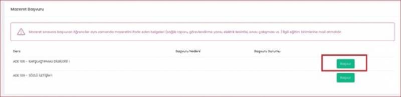 Not: Final Harf Başarı Notunu yayınlanmadan mazeret başvurusu yapılamaz.